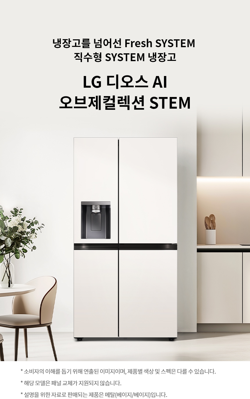 LG 디오스 AI 오브제컬렉션 STEM 얼음정수 냉장고